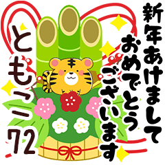 ともこ/トモコ専用72。正月/お正月/年賀/寒中見舞い/年賀状/寅年/あけおめ/ねことうさぎの名前スタンプ番外編/山田まぽん作。※他の名前は「○○専用72」で検索★