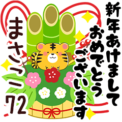 まさこ/マサコ専用72。正月/お正月/年賀/寒中見舞い/年賀状/寅年/あけおめ/ねことうさぎの名前スタンプ番外編/山田まぽん作。※他の名前は「○○専用72」で検索★山田まぽん 新 名前スタンプ より発売