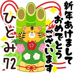 ひとみ/ヒトミ専用72。正月/お正月/年賀/寒中見舞い/年賀状/寅年/あけおめ/ねことうさぎの名前スタンプ番外編/山田まぽん作。※他の名前は「○○専用72」で検索★山田まぽん 新 名前スタンプ より発売