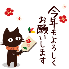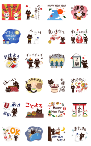 毎年使える!ナチュラルで絵本のようなねこのスタンプ3年末年始Ver。年末年始のあいさつを楽しくしよう!和風で女子力高めな大人可愛い女子向け。門松,鏡餅,招き猫,雪だるまmugiko より発売