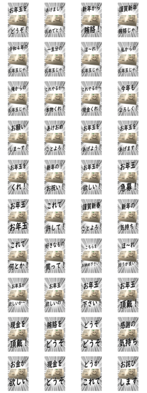 2022年正月と同時に新年のご挨拶と札束のお年玉で相手をいい気分にしてあげるスタンプです。