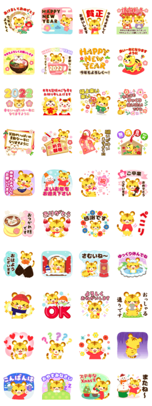 2022年、寅年のこのスタンプお気に入りです。優しい感じがして良いです。