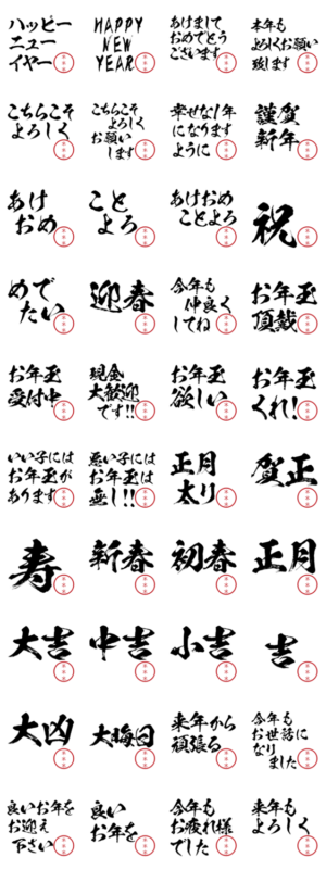 かっこいい文字のお正月スタンプです。いいですね!40種類ダウンロードできるのは良いですね!