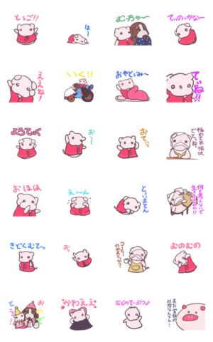 ピンク一杯使われたぶたたんのスタンプは愛くるしさいっぱいです。