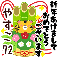 やすこ/ヤスコ専用72。正月/お正月/年賀/寒中見舞い/年賀状/寅年/あけおめ/ねことうさぎの名前スタンプ番外編/山田まぽん作。※他の名前は「○○専用72」で検索★