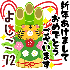 よしこ/ヨシコ専用72。正月/お正月/年賀/寒中見舞い/年賀状/寅年/あけおめ/ねことうさぎの名前スタンプ番外編/山田まぽん作。※他の名前は「○○専用72」で検索★山田まぽん 新 名前スタンプ より発売