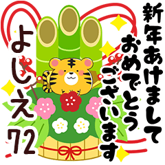 よしえ/ヨシエ専用72。正月/お正月/年賀/寒中見舞い/年賀状/寅年/あけおめ/ねことうさぎの名前スタンプ番外編/山田まぽん作。※他の名前は「○○専用72」で検索★