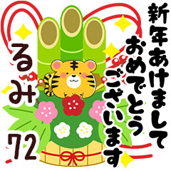 るみ/ルミ専用72。正月/お正月/年賀/寒中見舞い/年賀状/寅年/あけおめ/ねことうさぎの名前スタンプ番外編/山田まぽん作。※他の名前は「○○専用72」で検索★