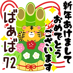 ばぁば/バァバ専用72。正月/お正月/年賀/寒中見舞い/年賀状/寅年/あけおめ/ねことうさぎの名前スタンプ番外編/山田まぽん作。※他の名前は「○○専用72」で検索★山田まぽん 新 名前スタンプ より発売