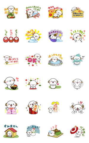 年末・年始にぴったりのスタンプです。干支の戌をモチーフに使いやすく仕上げました! お正月以外でも春、夏、秋、冬いつでもOK! めでたい、愛でたい。プレゼントにも☆ジグノシステムジャパン より発売