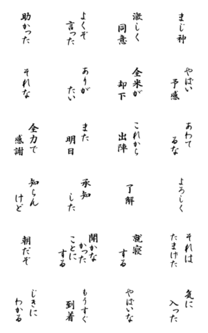 日常的に使用する言葉のエフェクトスタンプ。画面全体に文字が浮かび上がります。24 より発売