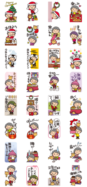 おばあちゃんの温もりと愛情が伝わるスタンプです。見ていてほっこりとしますね。