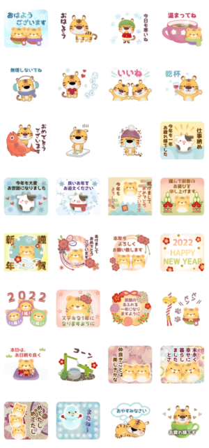 年末年始に使う挨拶と普段使いのスタンプです。可愛い干支の寅です。幸せな1年になりますように。なお&リリーベル より発売