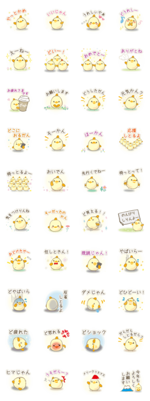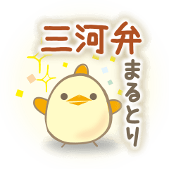 三河弁のまあるいとりのスタンプ。愛知三河地方、東三河の方言。豊橋市田原蒲郡豊川新城の方言メイン。ぴよぴよまるまるかわいいひよこ。職場、学校、家族で便利。manamie より発売