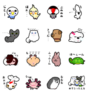 ふと見ると、ペットがこんなカオしていることってありませんか?鳥、猫、犬、スキニーギニアピッグ、ハムスター、兎、亀、頂天眼、ウーパールーパー、ハリネズミのセット。tomota. より発売