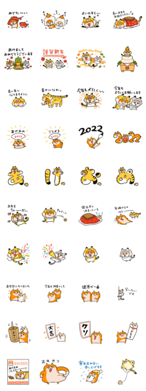 年末年始・お正月のご挨拶!新年をクソカワイイハムスター達とお祝い! ※販売期間:2022年3月31日10:59まで※販売停止後も購入済みのスタンプは使用可能・一部再販予定有