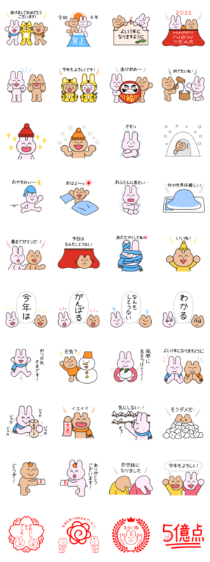 うさぎとくまの年賀スタンプセット【2022】のダウンロードはこちら