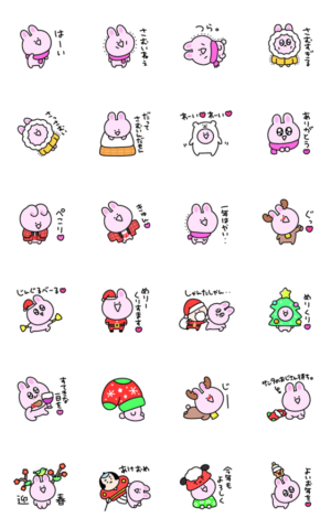 毎年使える♡動く冬スタンプ♡ミニうさぎ♡ スタンプ画像一覧