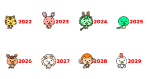 正月 干支 年賀 動物 2022-2029のダウンロードはこちら↓