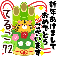 てるこ/テルコ専用72。正月/お正月/年賀/寒中見舞い/年賀状/寅年/あけおめ/ねことうさぎの名前スタンプ番外編/山田まぽん作。※他の名前は「○○専用72」で検索★山田まぽん 新 名前スタンプ より発売