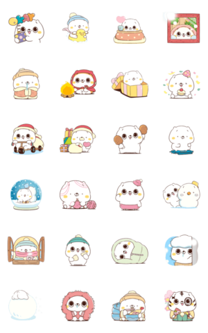 ほっぺをぷにぷにしたくなる可愛いスタンプですねぇ!冬に使いたくなります。癒されますね。