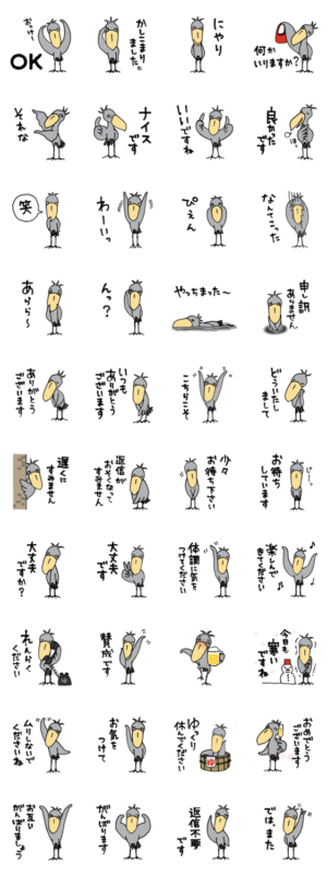 ハシビロコウの日常会話に毎日便利なスタンプです♪トマト より発売