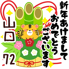 山口/専用72。正月/お正月/年賀/寒中見舞い/年賀状/寅年/あけおめ/ねことうさぎの名前スタンプ番外編/山田まぽん作。※他の名前は「○○専用72」で検索★山田まぽん 新 名前スタンプ より発売