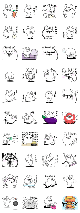 目力の強いうさぎのスタンプです。毒強めのコメント付きで送る相手を選んでしまうスタンプです。
