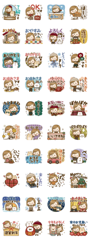 大人かわいい主婦のスタンプ、冬バージョン。どの種類もかわいくてよく使います!