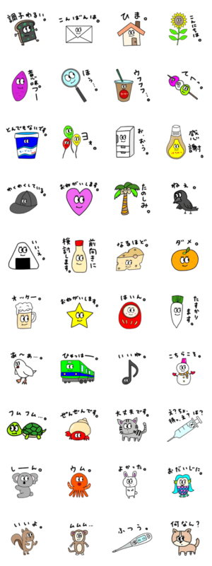 よしもと芸人、祇園というコンビの櫻井のほうが描いたスタンプの第3弾です。吉本興業 より発売