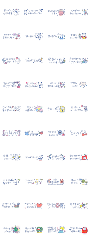 いろんなシーンで使えるスタンプです。素敵な挨拶がいっぱいあるので楽しいですね。