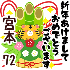 宮本/専用72。正月/お正月/年賀/寒中見舞い/年賀状/寅年/あけおめ/ねことうさぎの名前スタンプ番外編/山田まぽん作。※他の名前は「○○専用72」で検索★