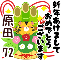 原田/専用72。正月/お正月/年賀/寒中見舞い/年賀状/寅年/あけおめ/ねことうさぎの名前スタンプ番外編/山田まぽん作。※他の名前は「○○専用72」で検索★