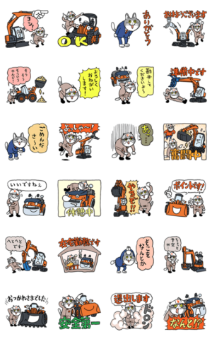 仕事猫が日立建機日本にやってきた! 働き者のケンキくんと仕事猫。 いっしょに働いたらどうなる!? 『日立建機日本』公式スタンプ第2弾!日立建機日本(株) より発売