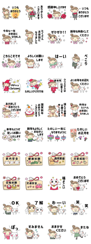 年末年始に使えるスタンプでしかも可愛く、それでいて言葉が敬語なのが妻いやすくて気に入ってます。