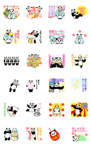 年末年始・動く!やる気のないパンダ2 再販 スタンプ画像一覧
