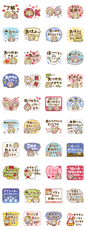大人かわいい 寒い冬、冬の日常(タメ語 敬語)、年末年始、お正月(あけましておめでとう 今年もよろしく)クリスマス等!冬に便利なスタンプがいっぱい!❤作:usakazu1