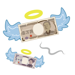便利なお金に関するスタンプです。お札、銀行、コンビニ、レシート、ATM、領収書、ポイントカード、商品券、クーポン、お年玉、返品、交換、給料、プレゼント、金庫などNtoWani より発売