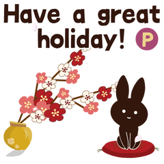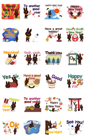 毎年使える!飛び出す!ナチュラルで絵本のようなウサギのスタンプ3年末年始:英語Ver。和風で女子力高めな大人可愛い女子向け。門松,招き猫,雪だるま