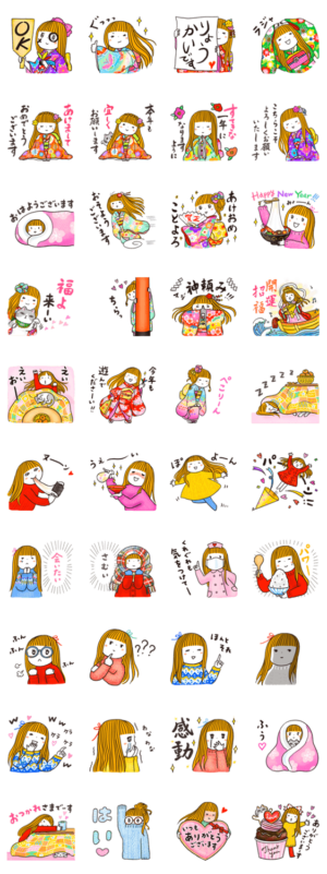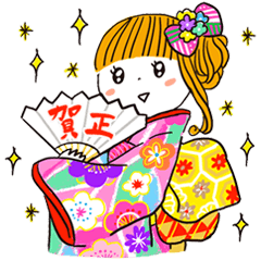 おっちょこ第四弾はお正月♪とびきり華やかなお着物で、新年のご挨拶を楽しんでね♡冬の日常も使えます。バレンタインや成人式にも是非☆(こちらは再販のスタンプです)kazue より発売