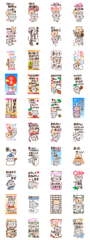 【期間限定販売】2022年の寅年に合わせて虎模様の『ちびアメ』が年末年始のあいさつをします。アメリカンショートヘア等の猫好きの方、新年の挨拶をトラねこと一緒にぜひ。 ※このスタンプはトークルームで大きく表示されるBIGスタンプです。かたこ より発売