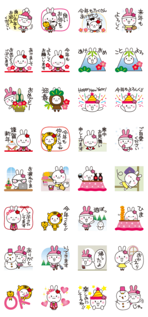 可愛い白うさぎの日常使いスタンプ。2021〜22年の年末年始バージョンです。