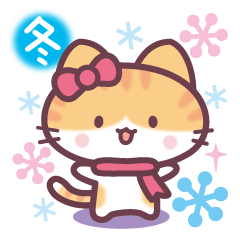 可愛いとらねこの冬の日常挨拶とクリスマス、年末年始のスタンプです。ねこ/茶トラ猫/お正月/年賀状/雪/雪の結晶/キュート/寅年/敬語/ゆるかわ/大晦日/招き猫/使える
