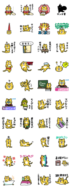 新年に盛り上がれる寅年スタンプです。種類が豊富でいいですね。