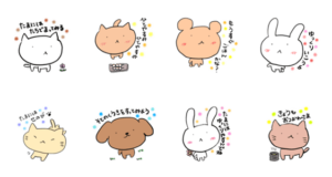 もちのようなどうぶつのスタンプです。癒しの言葉とともにいかがですか。mii より発売