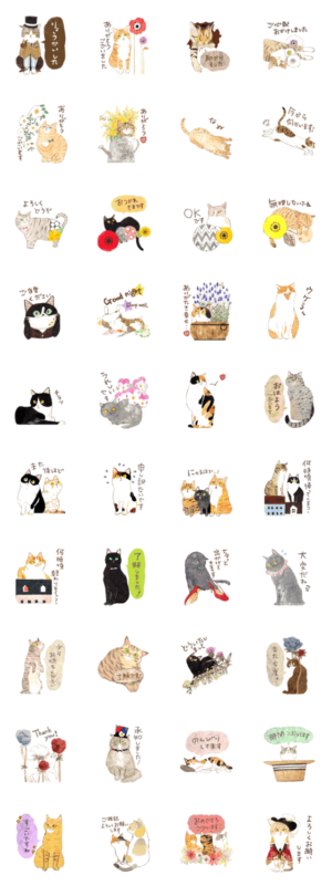 水彩で描いたネコたちが送る、日常会話からビジネスシーンまで使えるスタンプです。ネコ好きさんは必見です!