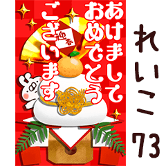 れいこ/レイコ専用73。正月/お正月/年賀状/動く/敬語/あけおめ/年末年始/喪中/ねことうさぎの名前スタンプ/山田まぽん作。※他の名前は「○○専用73」で検索★山田まぽん 新 名前スタンプ より発売