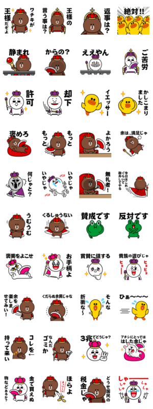 ブラウン/コニー/サリー/レナード/LINEキャラクターズ/毎日使える/日常会話/挨拶/王様/王族/貴族/セレブ/お嬢様/お姫様/王子様/プリンス/プリンセス/キング/クイーン ※BROWN & FRIENDS をみんなでつくろう!キャンペーン参加スタンプです4A-Studio(よんえーすたじお) より発売