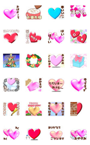 動くラブラブなかわいい冬ハート 年末年始 スタンプ画像一覧