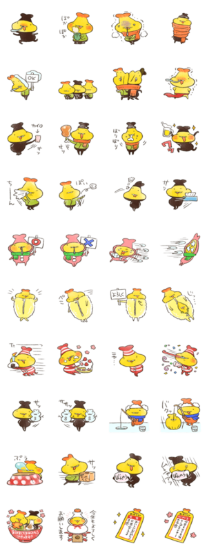テンプラニンジャ&サムライの、冬に活躍するスタンプです。寒い時期はテンプラで暖まりましょう。シノザキ より発売